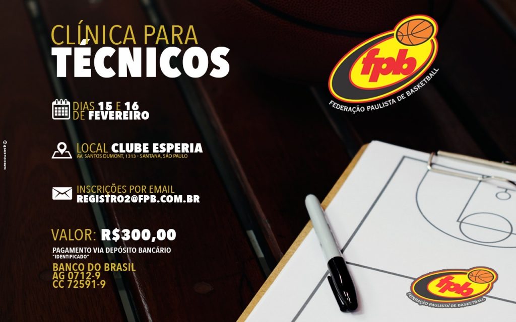 São Paulo – A FPB abriu nesta quarta-feira as inscrições da Clínica para Técnicos, que será realizada nos dia 15 e 16 de fevereiro, no Clube Esperia.